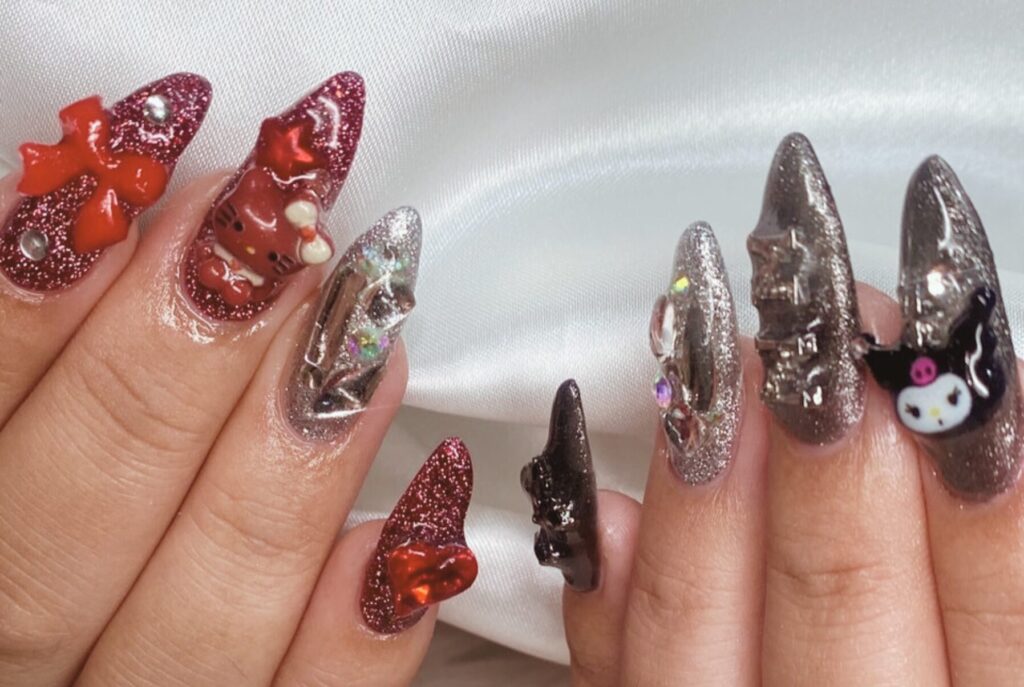 フラッシュネイルとマグネットネイルをベースにパーツは盛り盛りです!