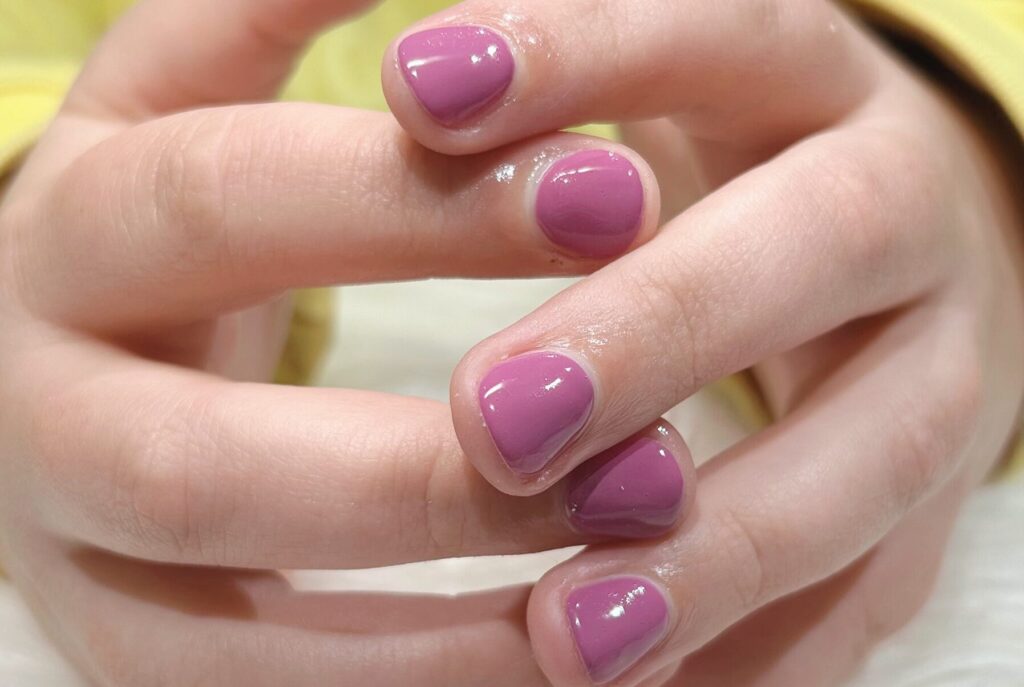 ぶどうのようなパキッとしたカラーで爪先が可愛らしい印象になります🍇