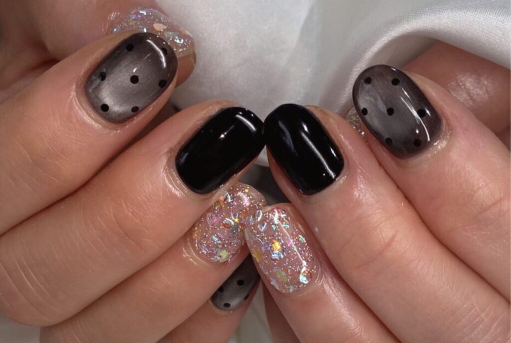 黒をベースにして、ラメで華やかさが出ていて素敵なバランスです!