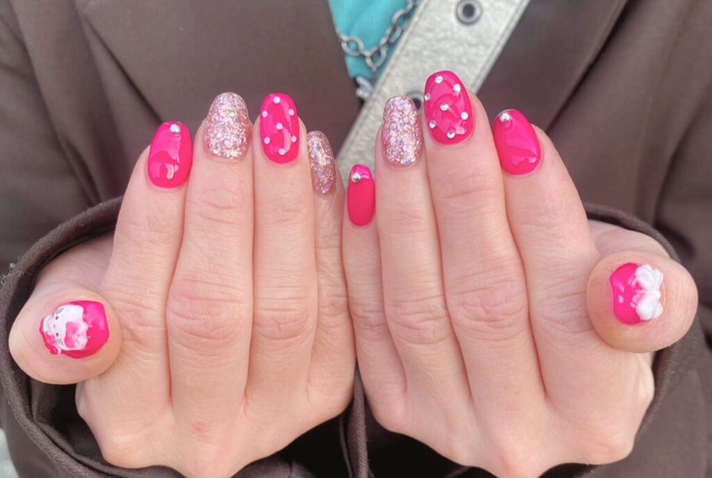 ワンカラーネイルにプラス料金でパーツをつけています!