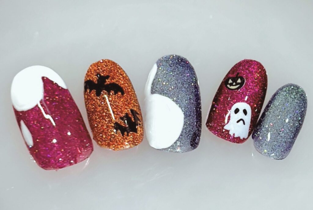春ネイルのサンプルです。左から順に「定額」「ライトコース」「マグネット」です。